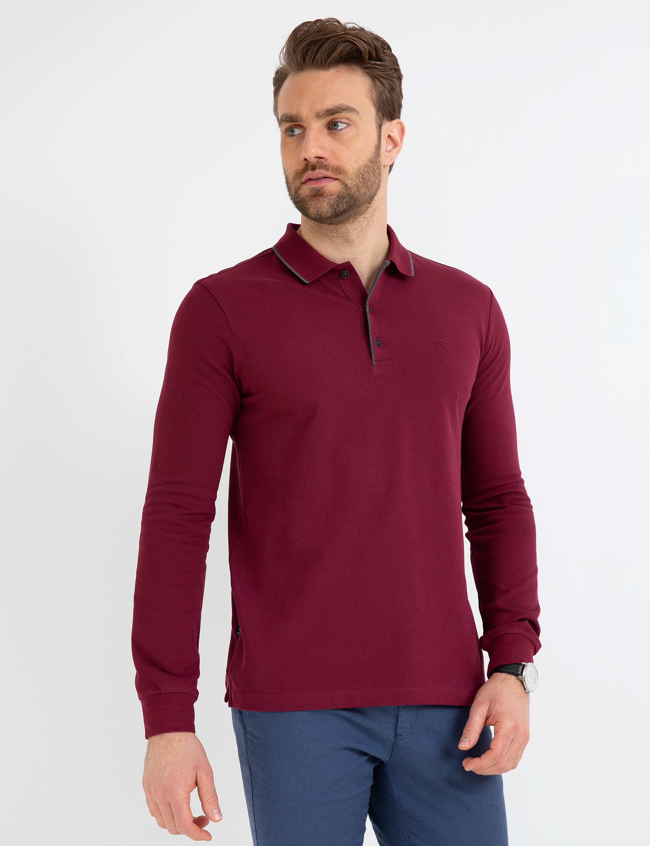 - Bordo Slim Fit Polo Yaka Sweatshirt