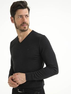 Antrasit Melanj Slim Fit Basic Kazak