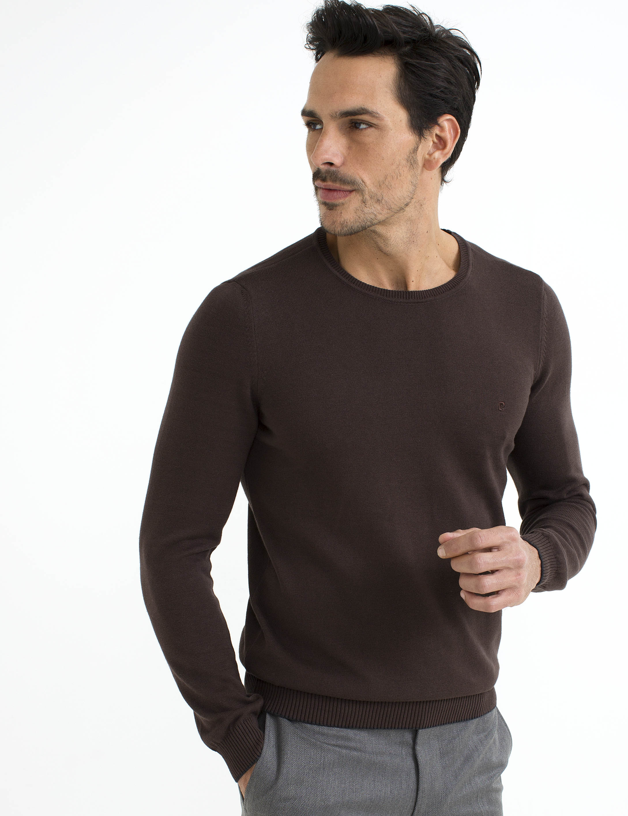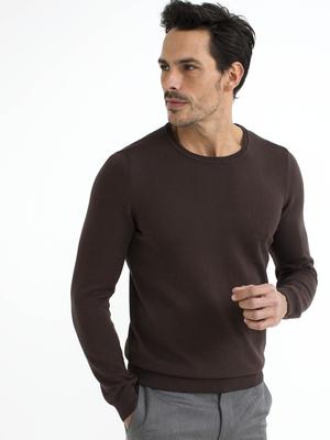 Kahverengi Slim Fit Bisiklet Yaka Basic Triko Kazak