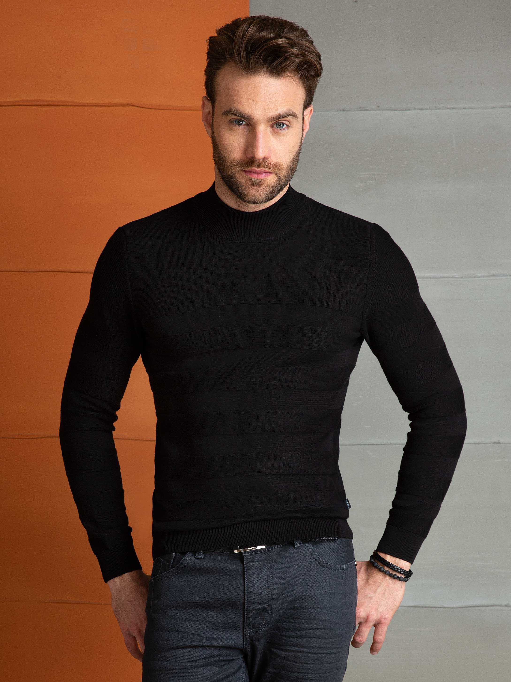 Siyah Slim Fit Triko Kazak