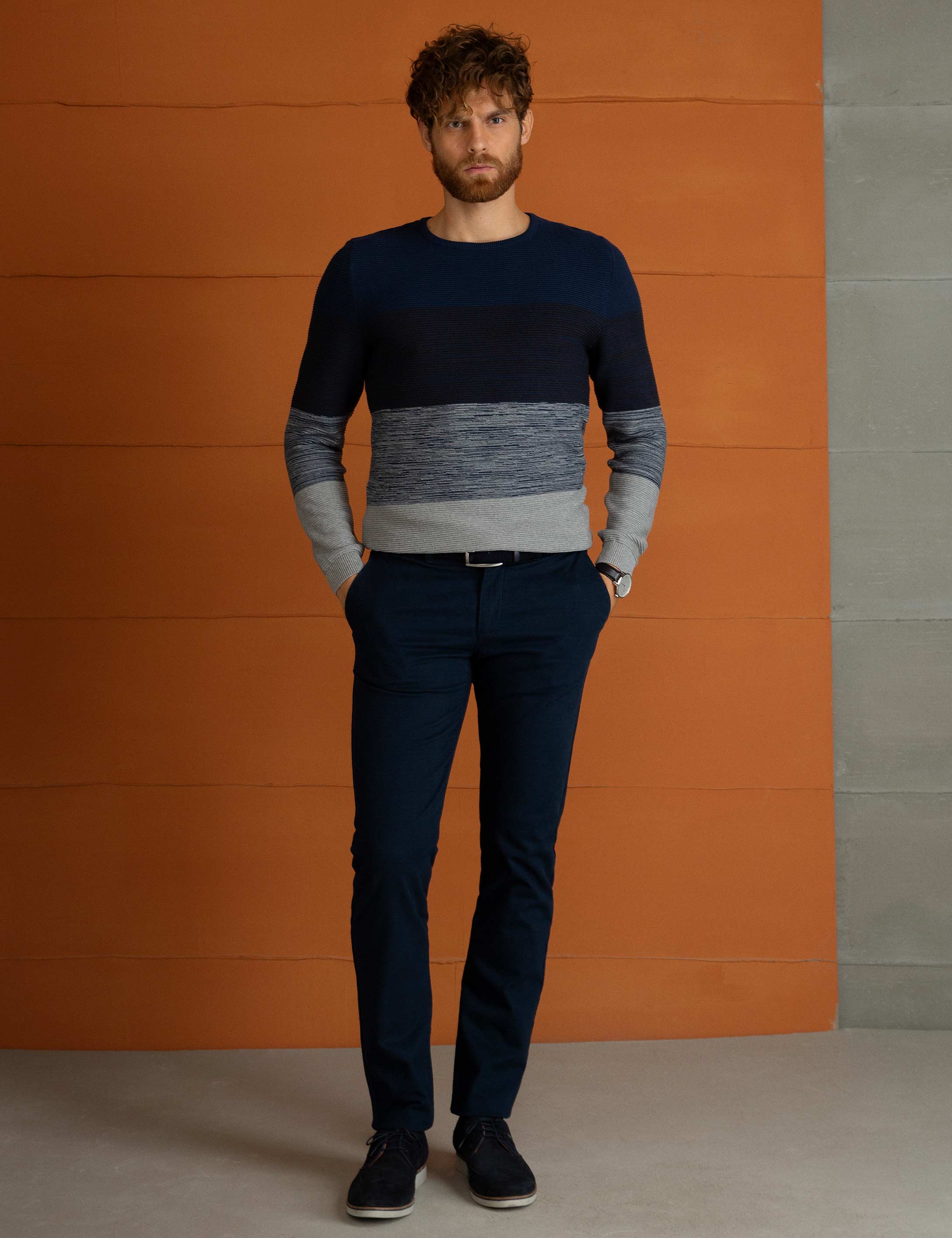 - Lacivert Slim Fit Triko Kazak