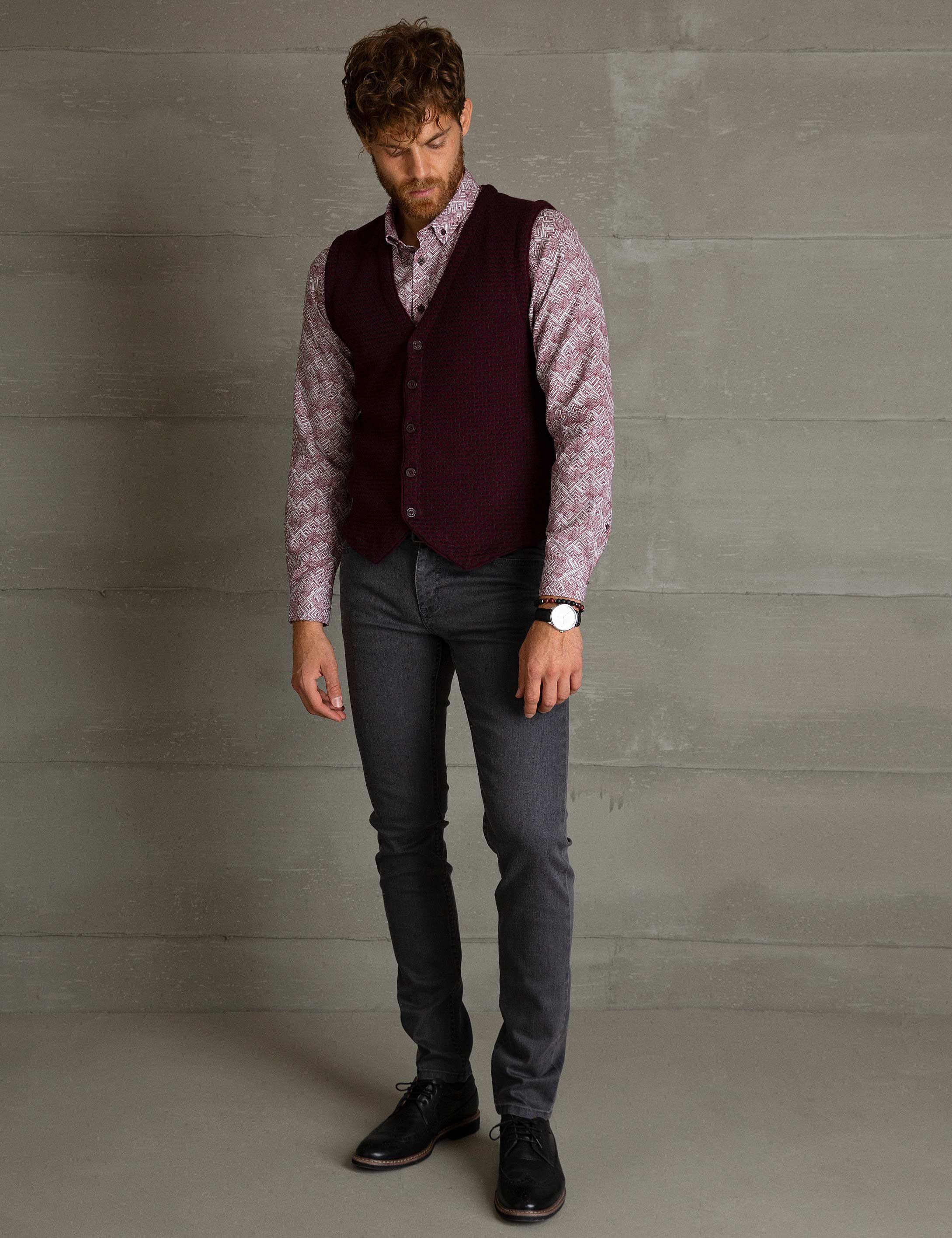 - Bordo Slim Fit Triko Yelek