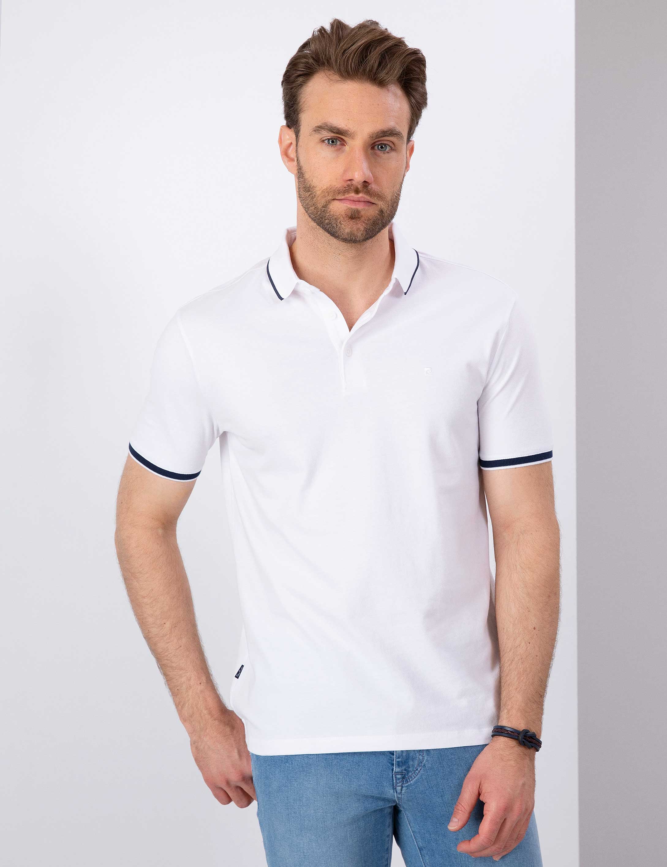 Beyaz Slim Fit Polo Yaka T-Shirt