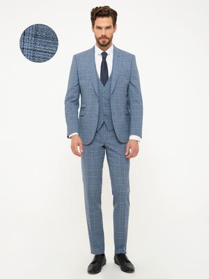 Mavi Ekose Ekstra Slim Fit Yelekli Takım Elbise