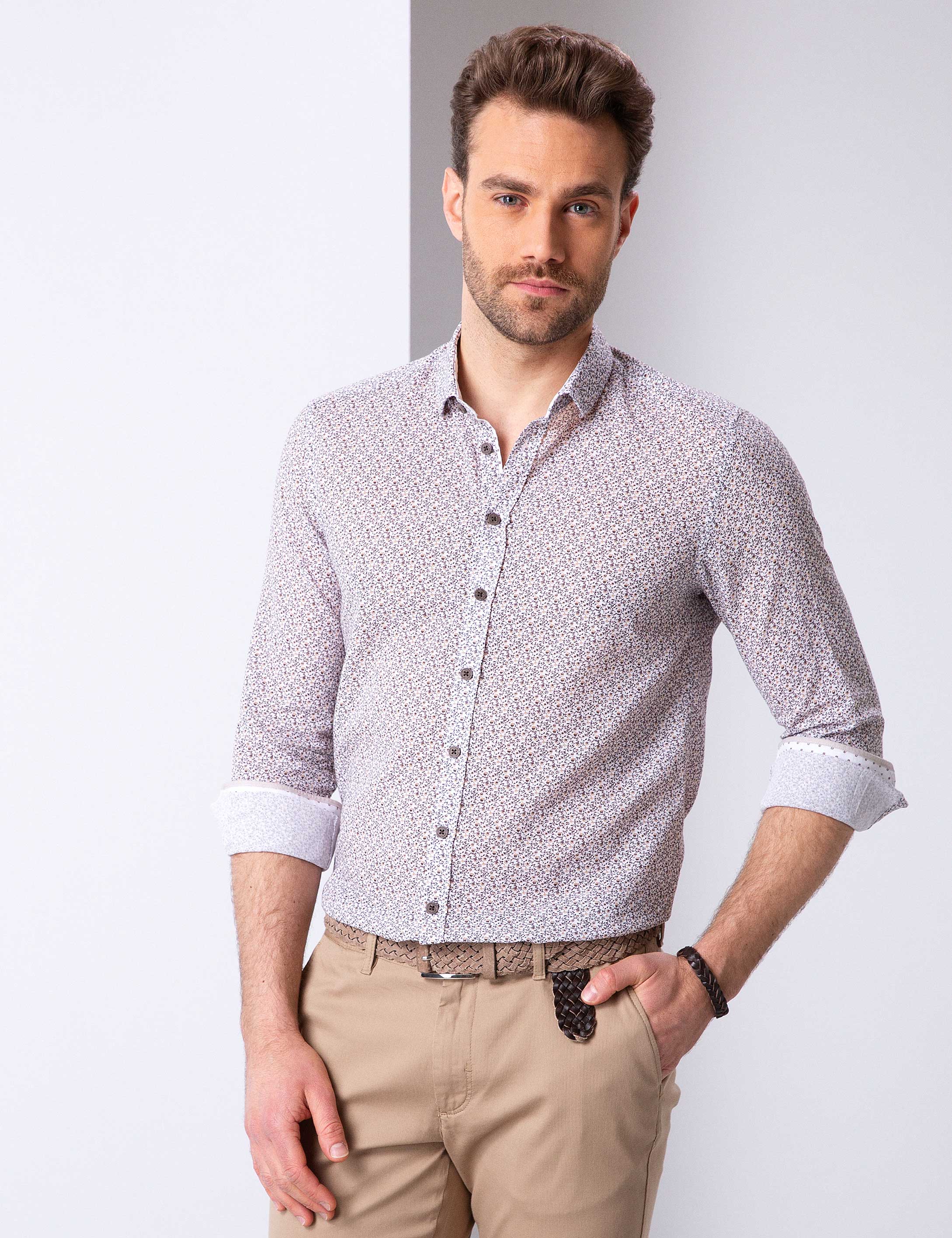 Kahverengi Slim Fit Uzun Kollu Gömlek