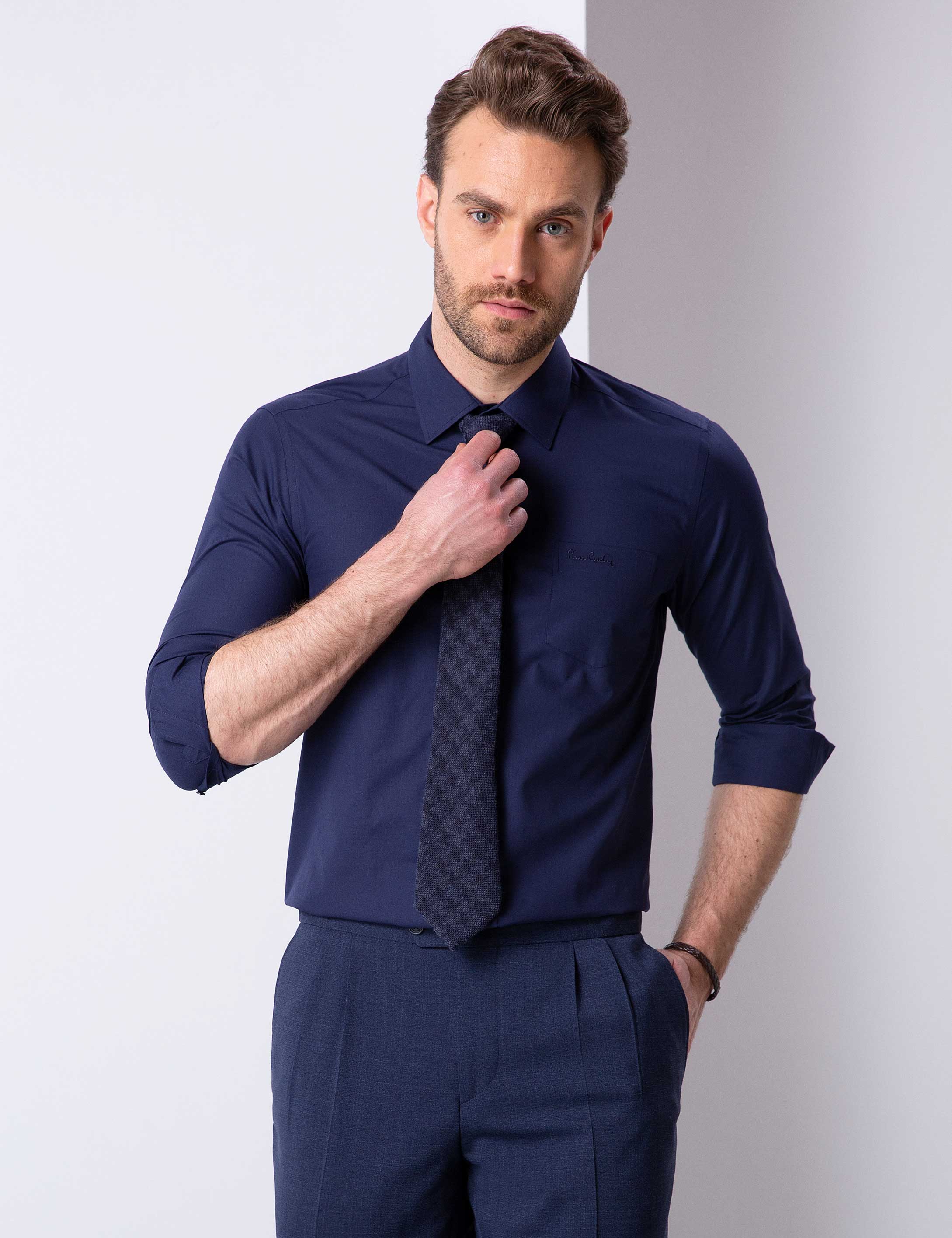 Lacivert Regular Fit Uzun Kollu Basic Gömlek