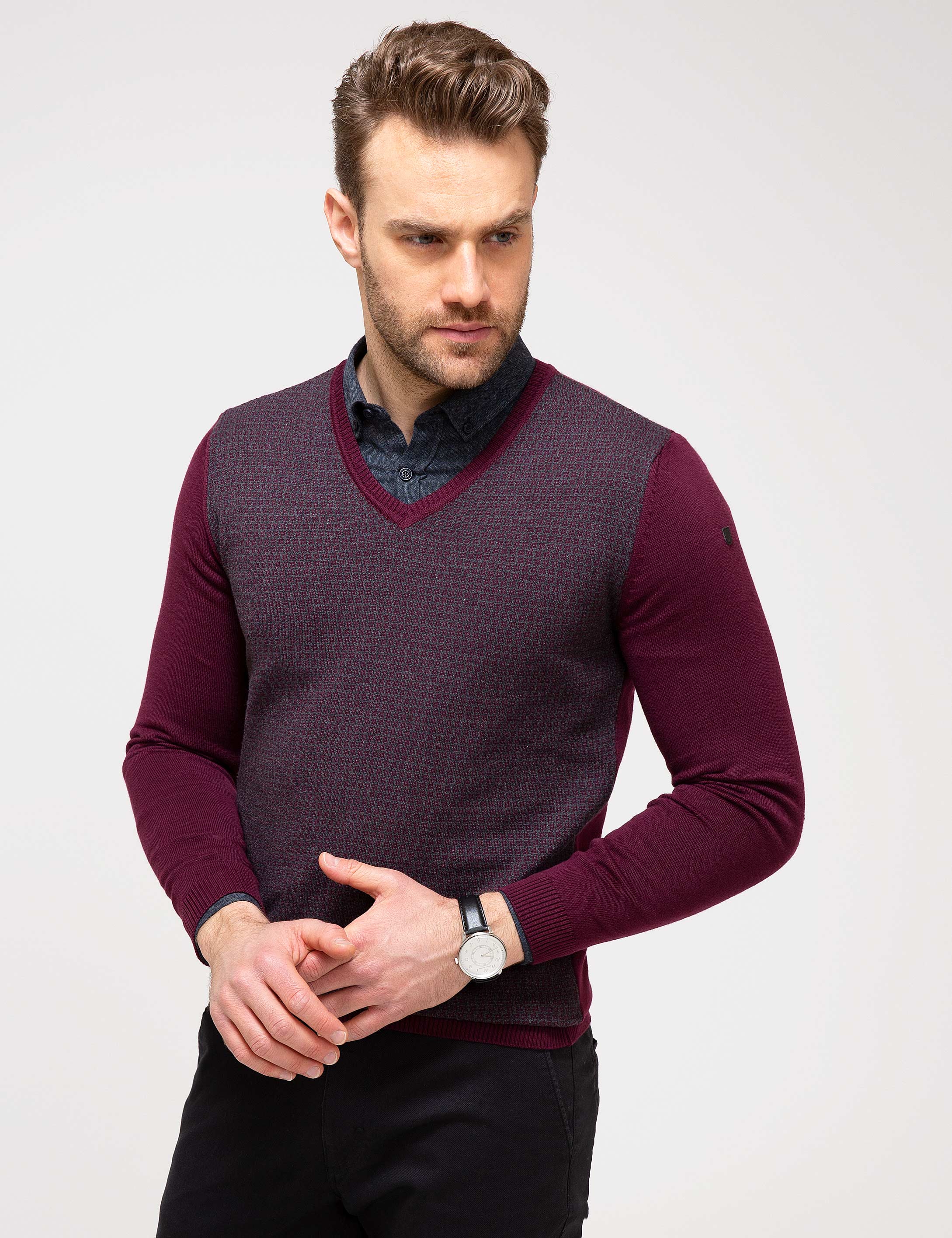 - Bordo Slim Fit Triko Kazak