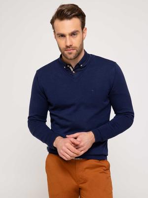 - Lacivert Slim Fit V Yaka Basic Triko Kazak