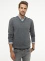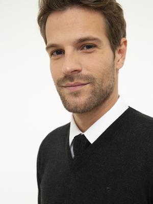 Antrasit Melanj Slim Fit V Yaka Basic Triko Kazak