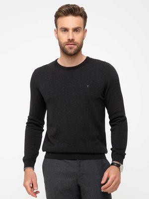 Antrasit Gri Melanj Slim Fit Basic Triko Kazak