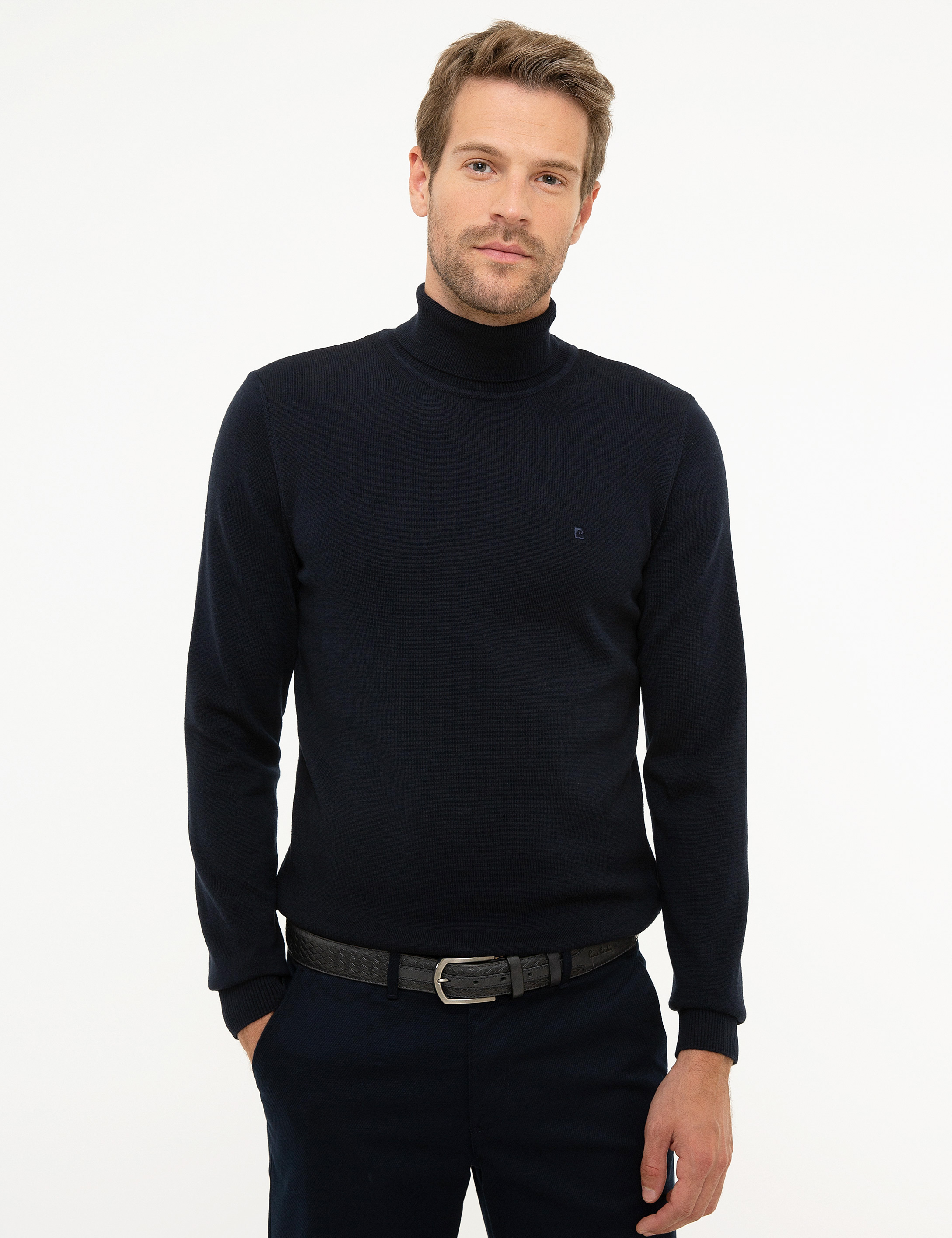 Koyu Lacivert Slim Fit Tam Balıkçı Yaka Basic Triko Kazak