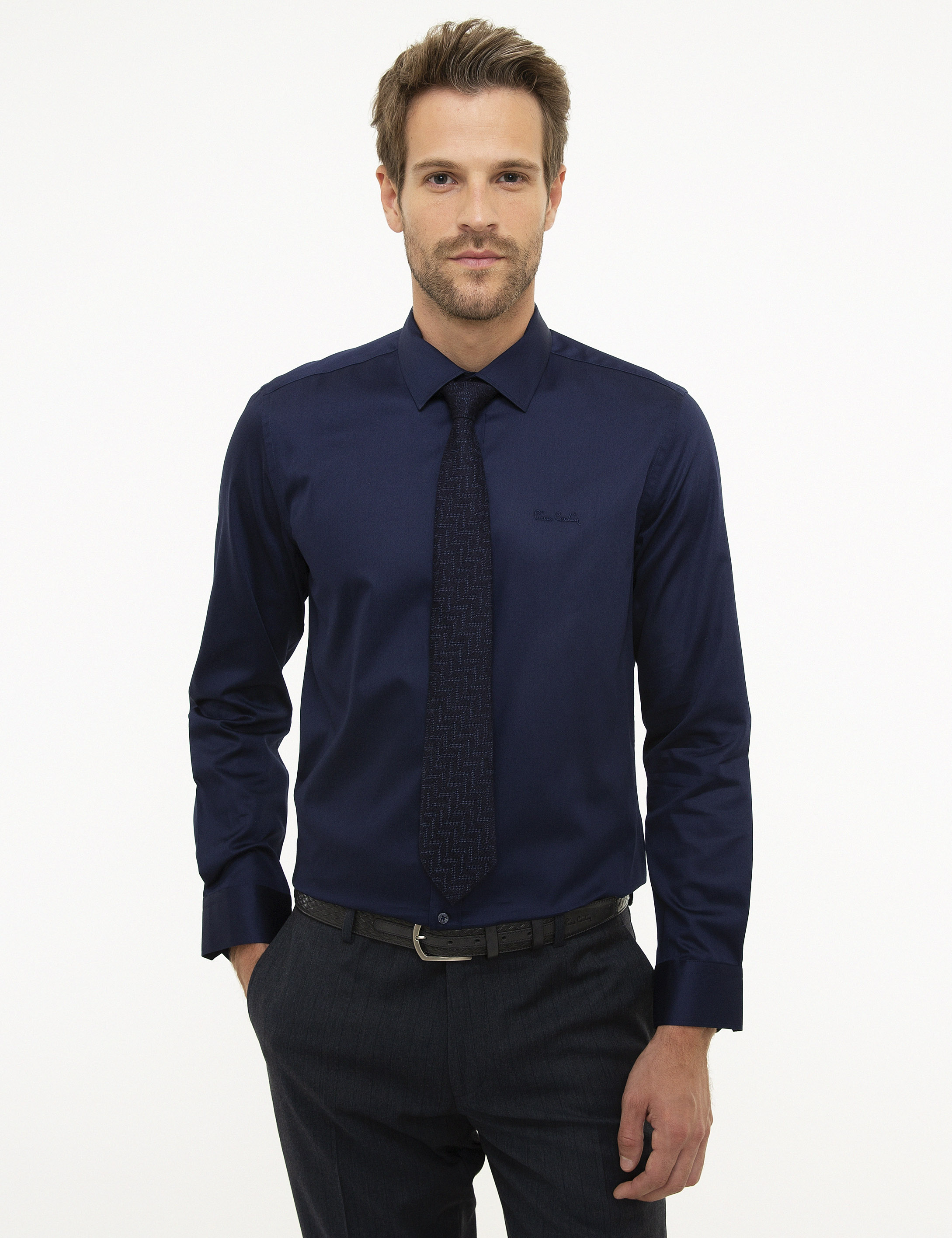 Lacivert Slim Fit Uzun Kollu Klasik Gömlek