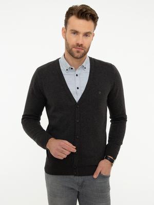 - Antrasit Melanj Slim Fit Basic Triko Hırka