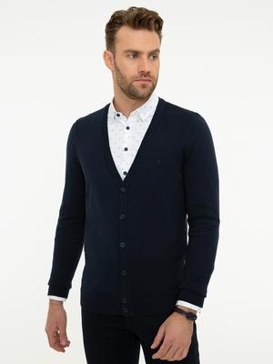 - Koyu Lacivert Slim Fit Basic Triko Hırka