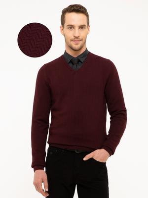 - Bordo Slim Fit V Yaka Triko Kazak
