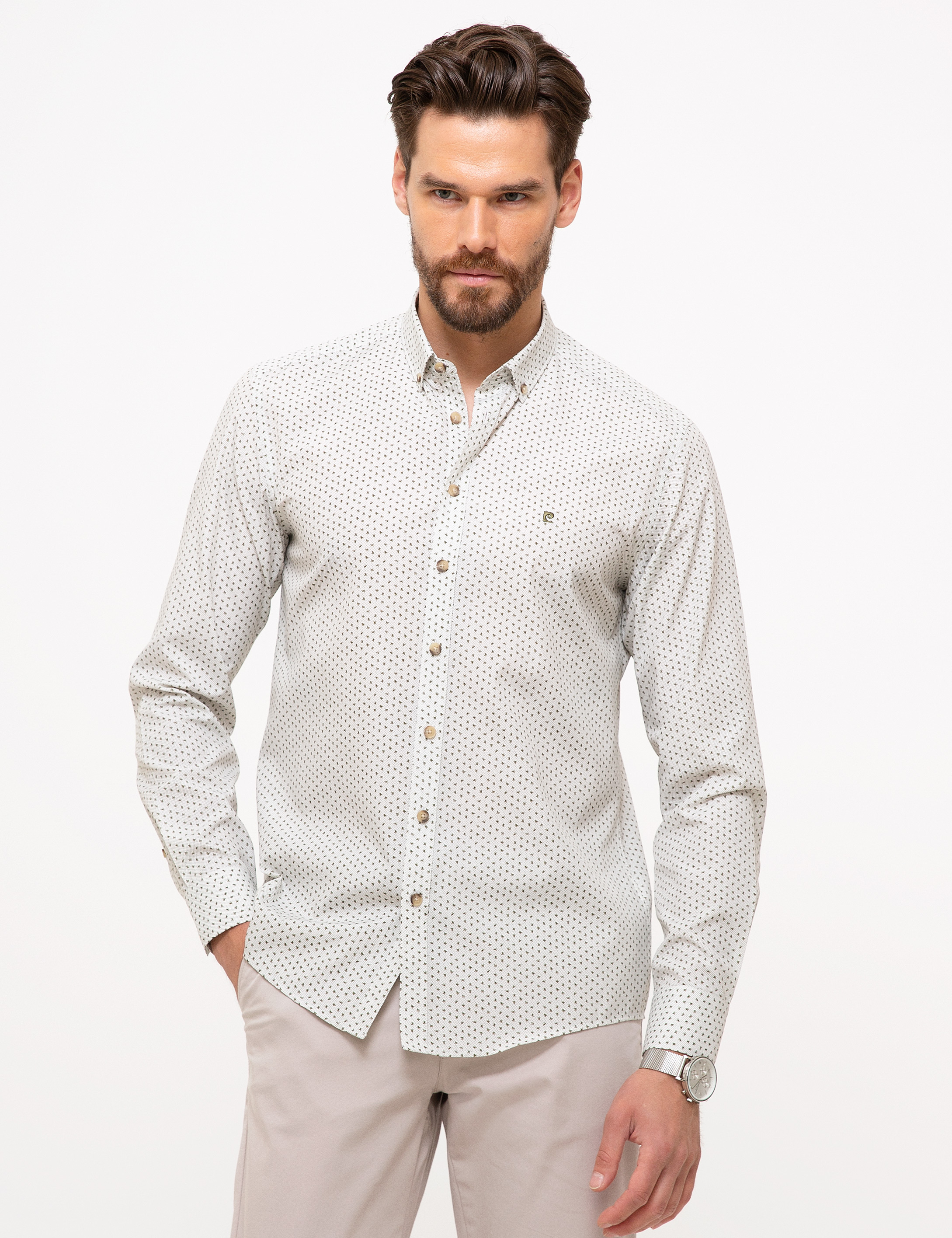 - Haki Slim Fit Uzun Kollu Gömlek