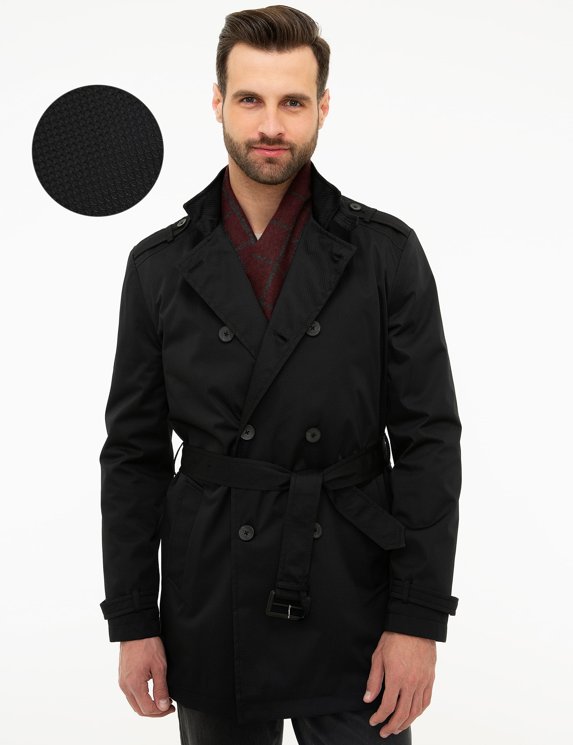 Siyah Standart Fit Trençkot