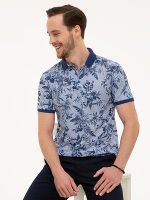 Koyu Mavi Slim Fit Desenli Polo Yaka Tişört