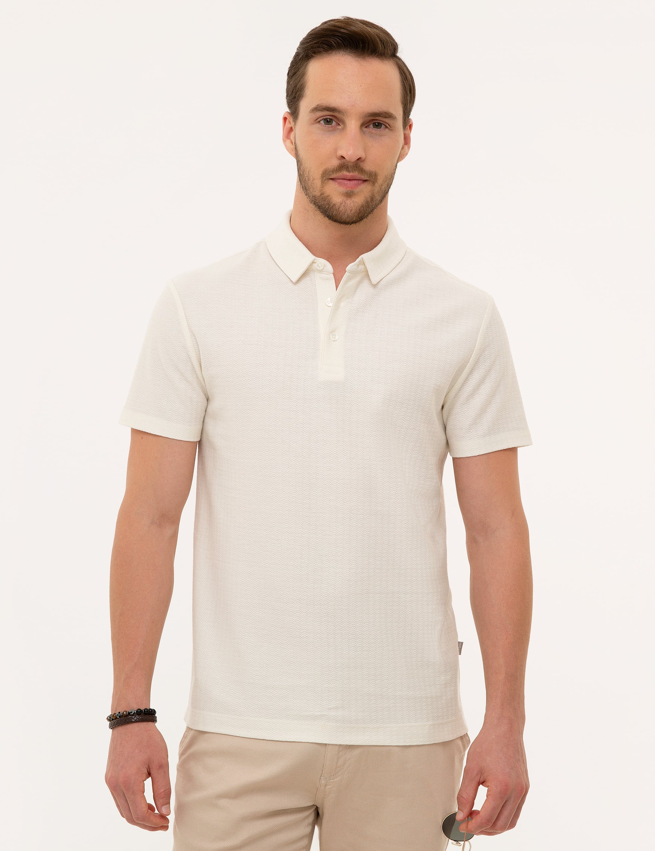 - Ekru Slim Fit Gömlek Yaka Tişört