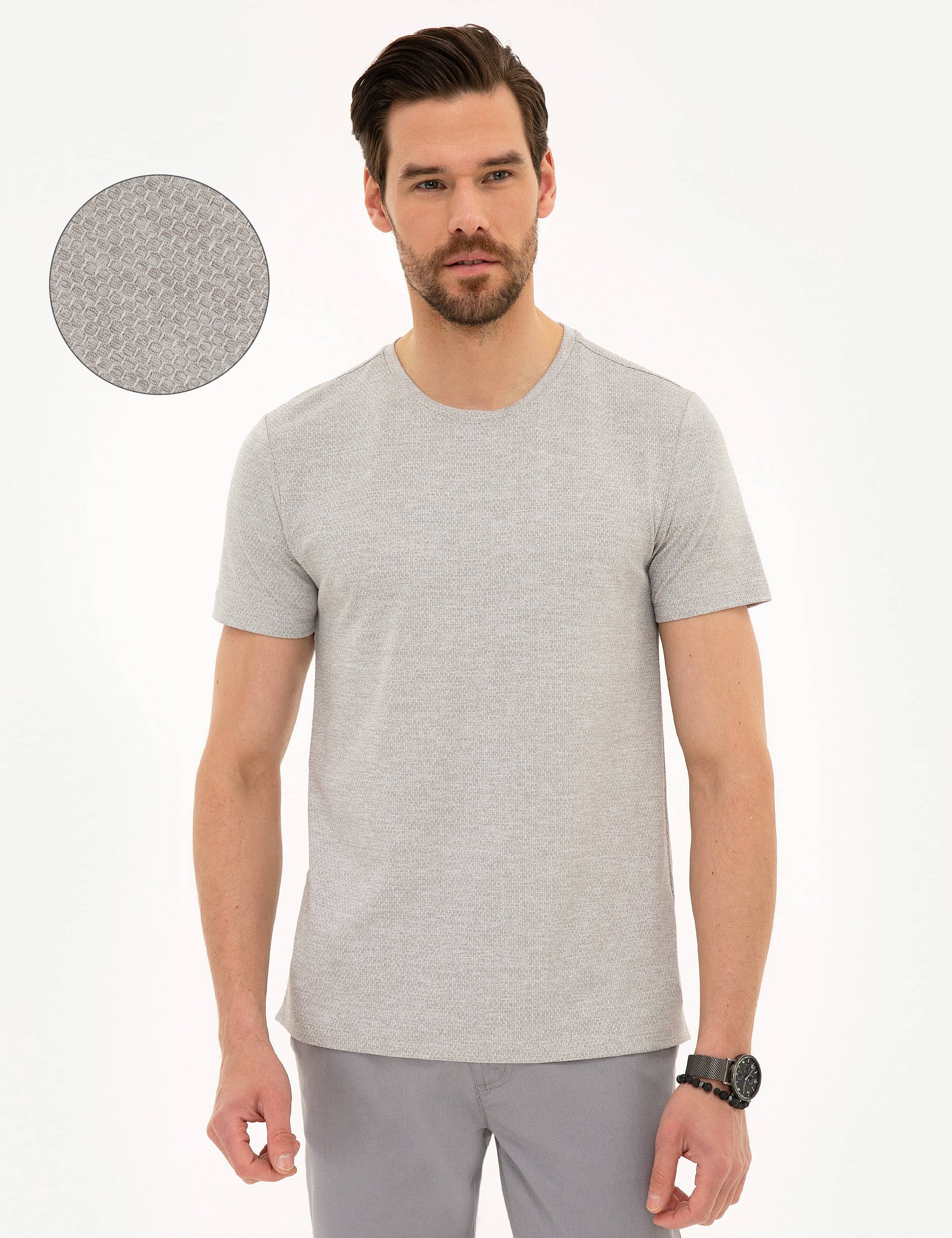 Açık Gri Slim Fit Bisiklet Yaka T-Shirt