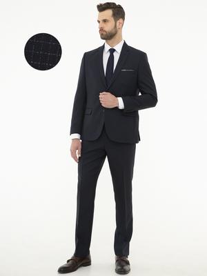 - Ekose Lacivert Slim Fit Takım Elbise