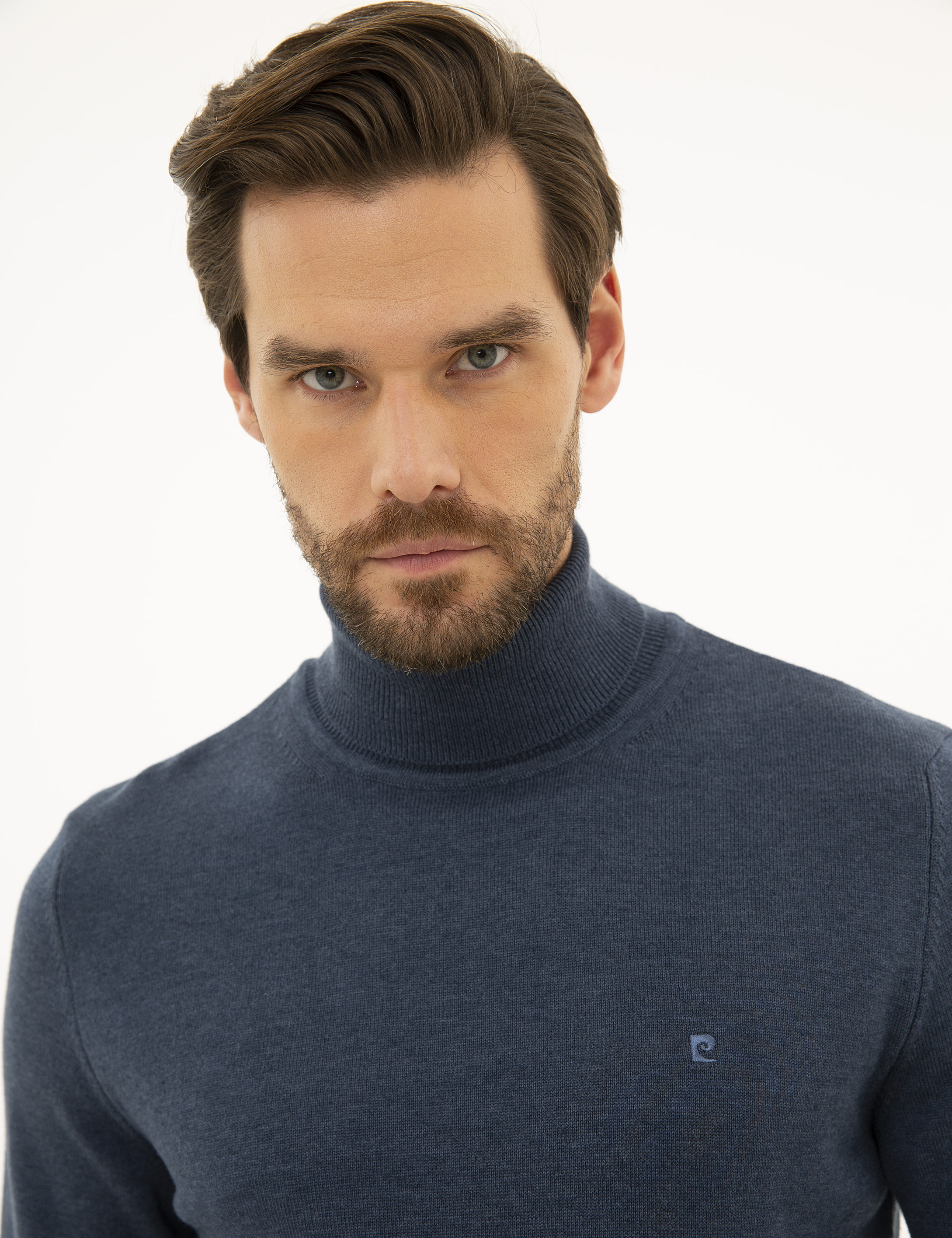 İndigo Melanj Slim Fit Balıkçı Yaka Basic Triko Kazak