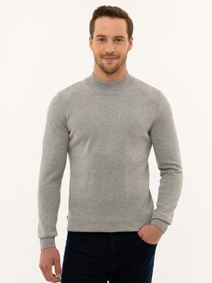 Açık Gri Melanj Slim Fit Yarım Balıkçı Yaka Triko Kazak