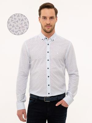 Lacivert Detaylı Beyaz Slim Fit Gömlek