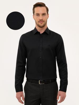 Siyah Slim Fit Armürlü Gömlek