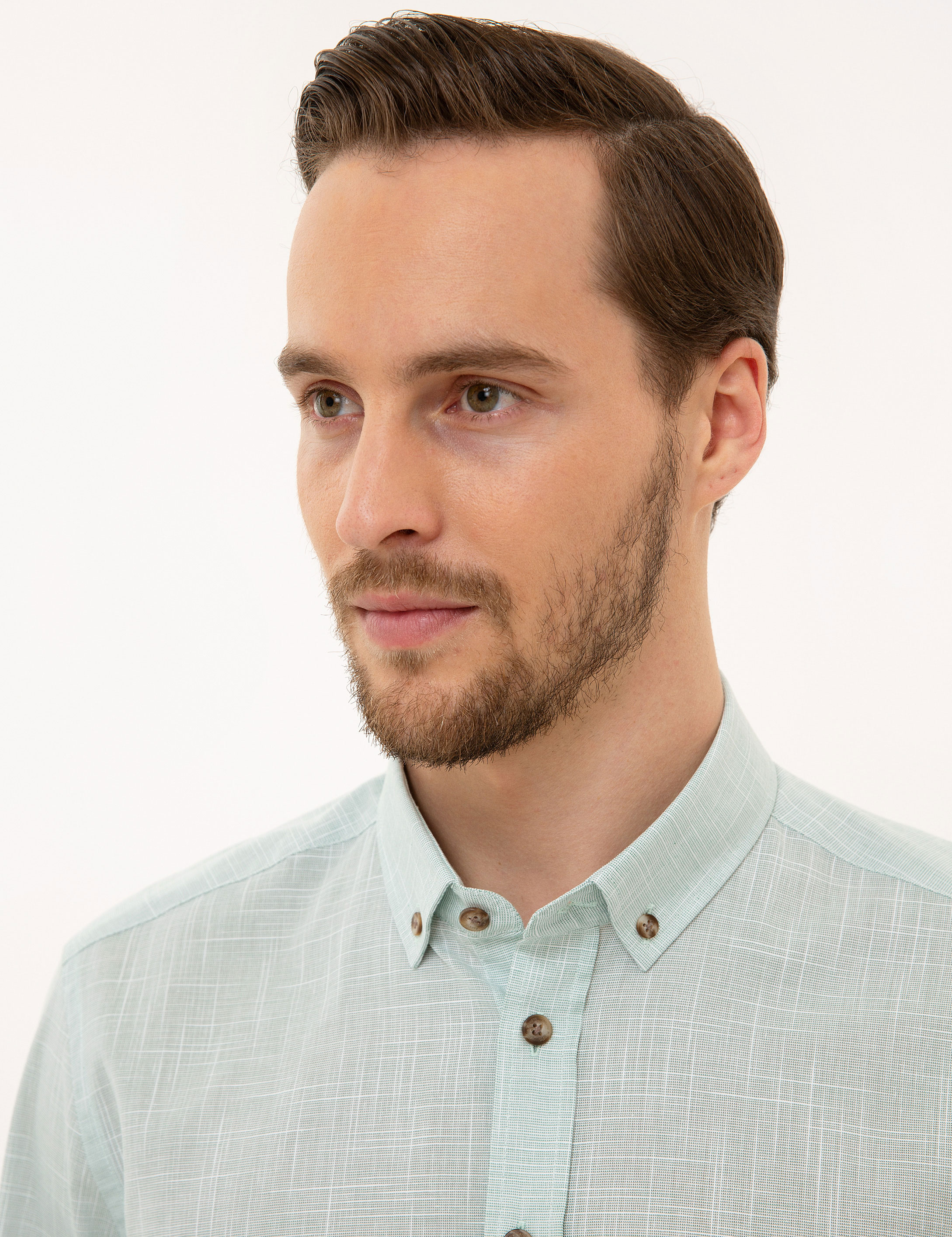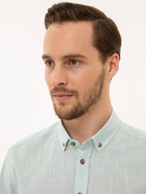 - Yeşil Slim Fit Keten Görünümlü Gömlek