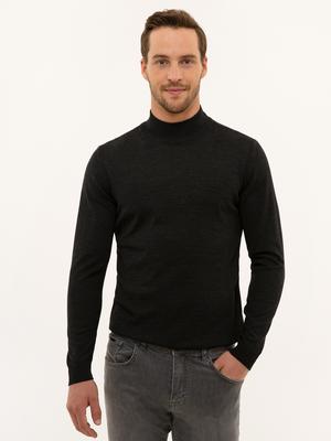 - Antrasit Melanj Slim Fit Yarım Balıkçı Yaka Yün Karışımlı Basic Triko Kazak