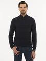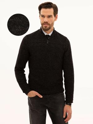 - Siyah Slim Fit Fermuarlı Dik Yaka Triko Kazak