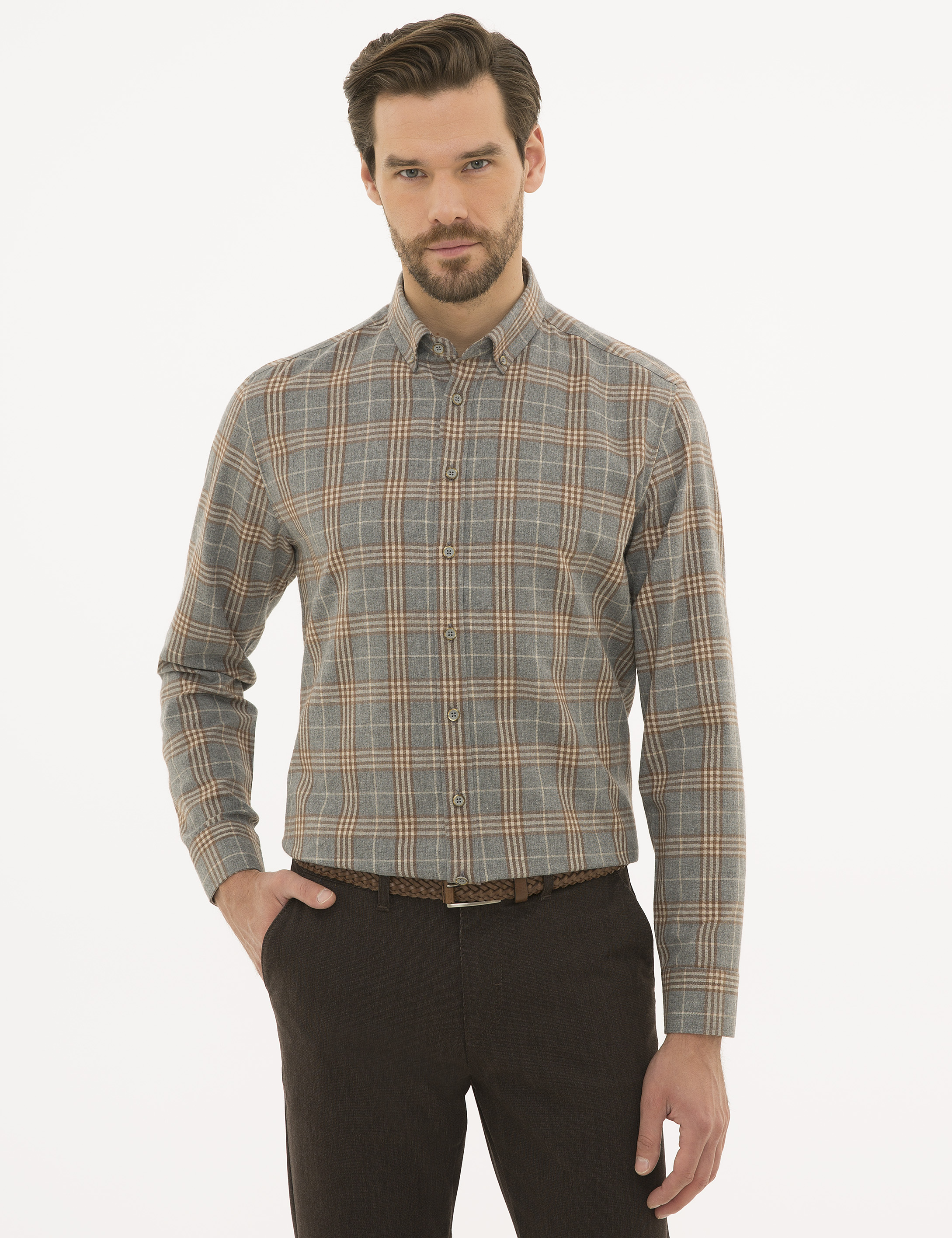 - Gri Regular Fit Uzun Kollu Gömlek