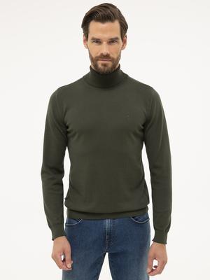 - Yeşil Slim Fit Tam Balıkçı Yaka Basic Triko Kazak