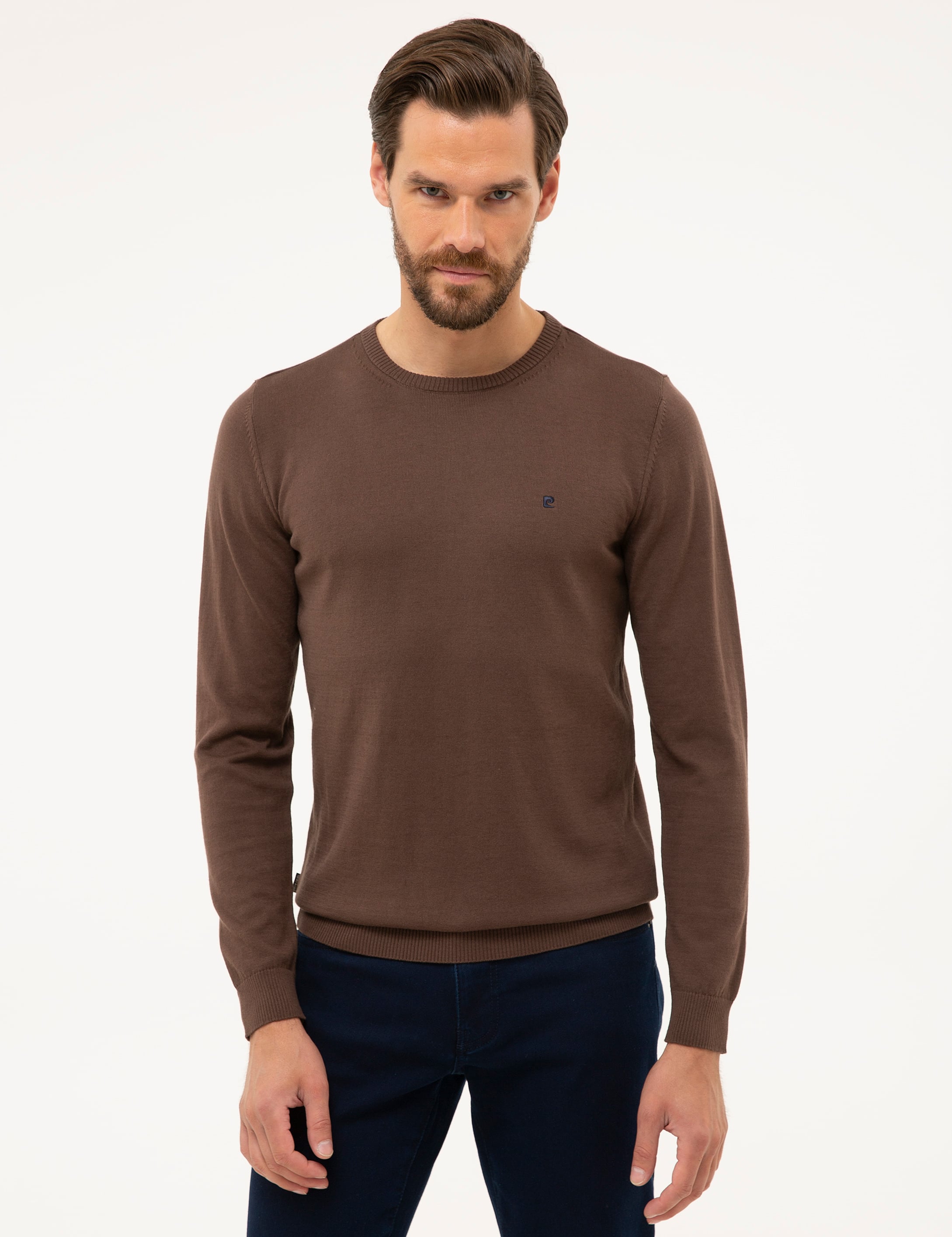 - Kahverengi Slim Fit Bisiklet Yaka Basic Triko Kazak
