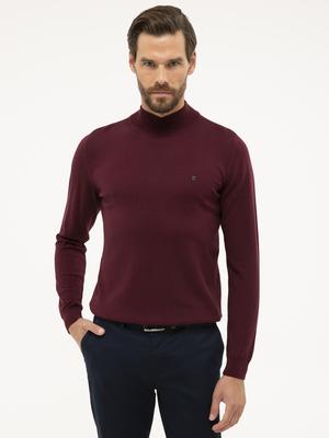 - Bordo Slim Fit Yarım Balıkçı Yaka Basic Triko Kazak