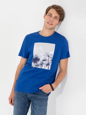 Mavi Slim Fit Baskılı Bisiklet Yaka Tişört
