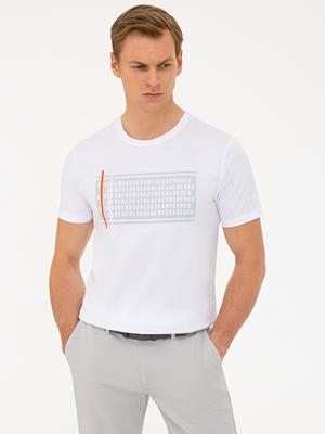 - Beyaz Slim Fit Baskılı Bisiklet Yaka Tişört