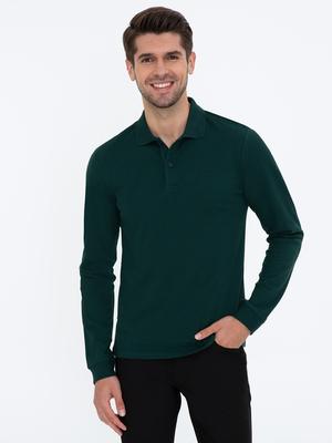 - Koyu Yeşil Slim Fit Polo Yaka Sweatshirt