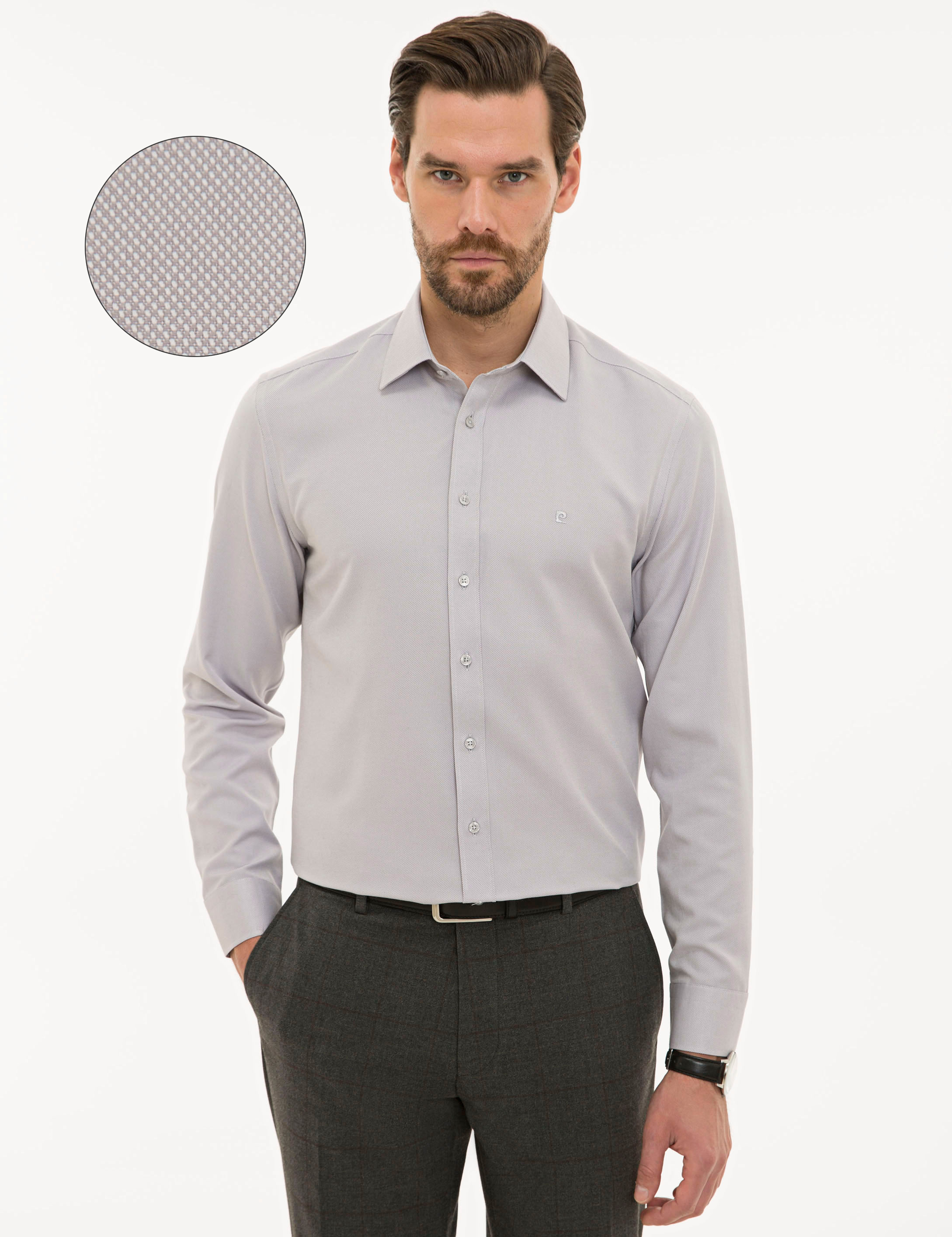 Gri Slim Fit Oxford Gömlek