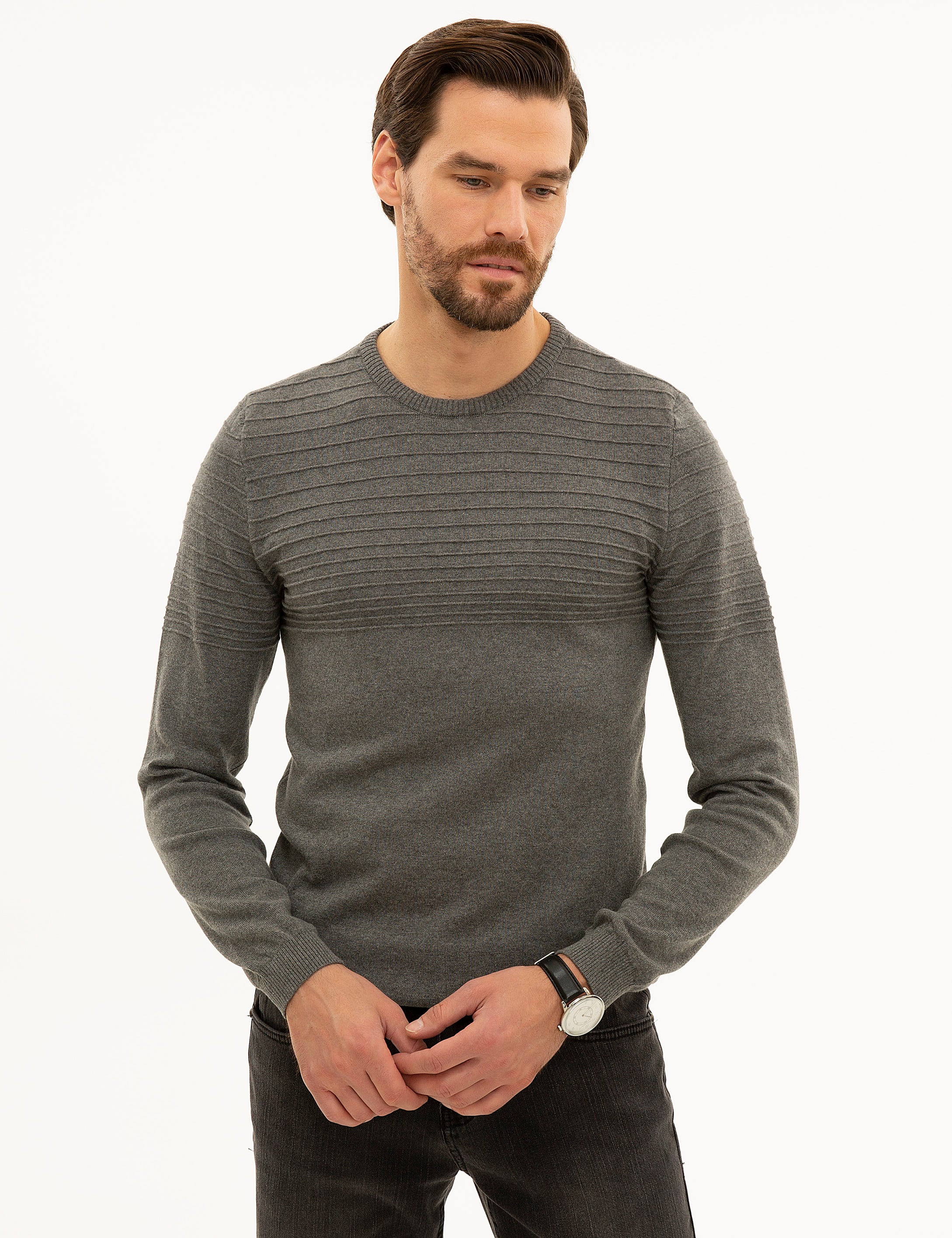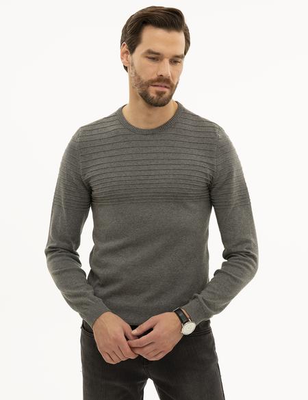 - Gri Melanj Slim Fit Triko Kazak
