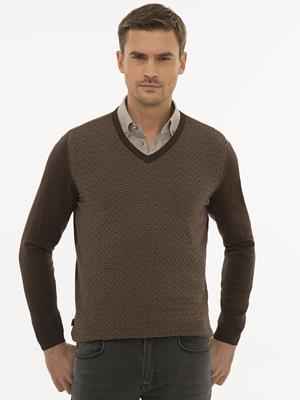 - Koyu Kahverengi Slim Fit Triko Kazak