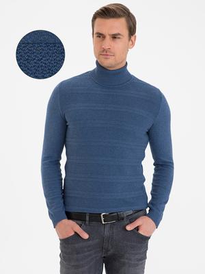 İndigo Melanj Slim Fit Balıkçı Yaka Triko Kazak