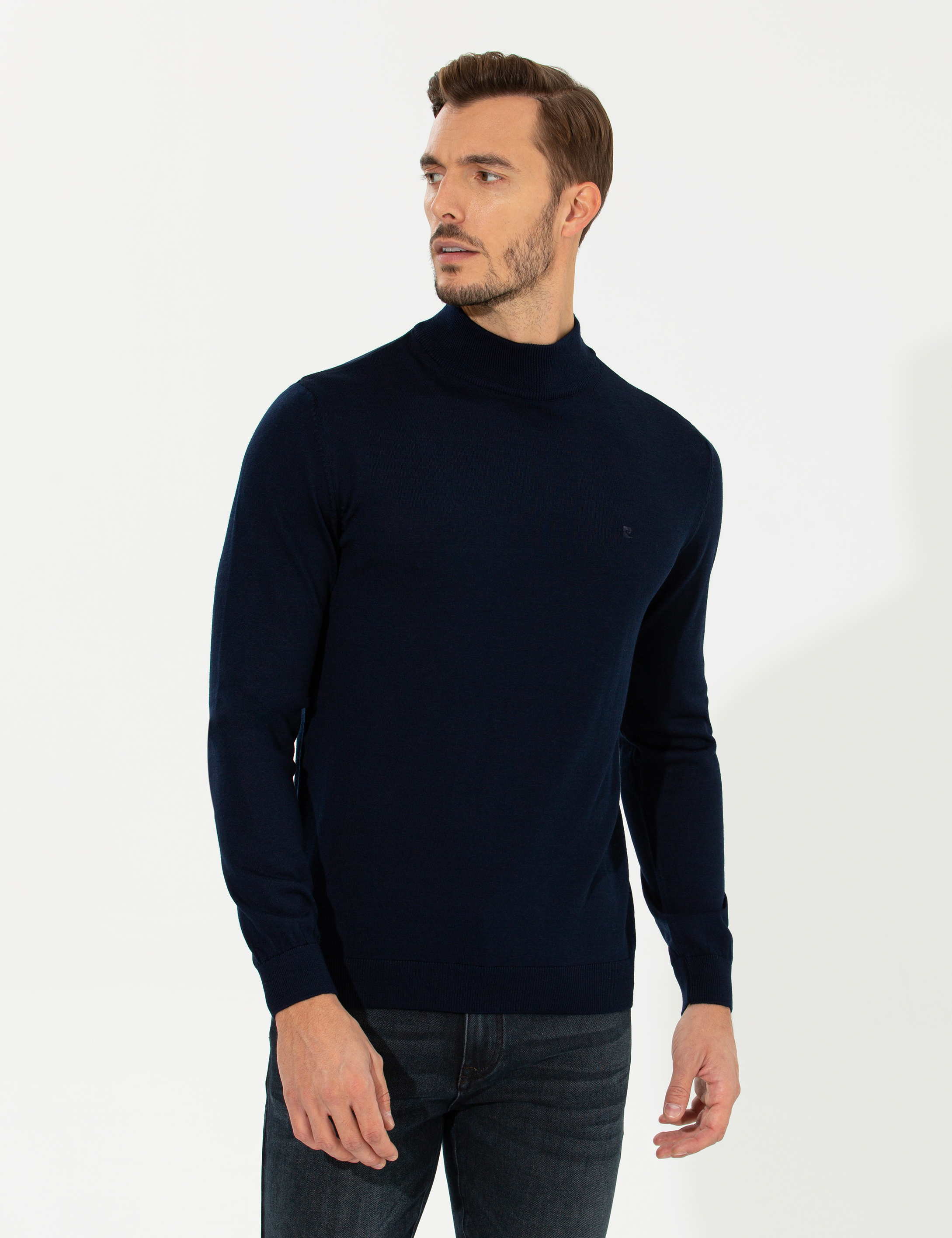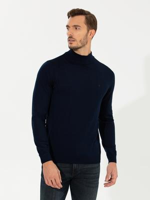 Lacivert Regular Fit Yarım Balıkçı Yaka Basic Triko Kazak