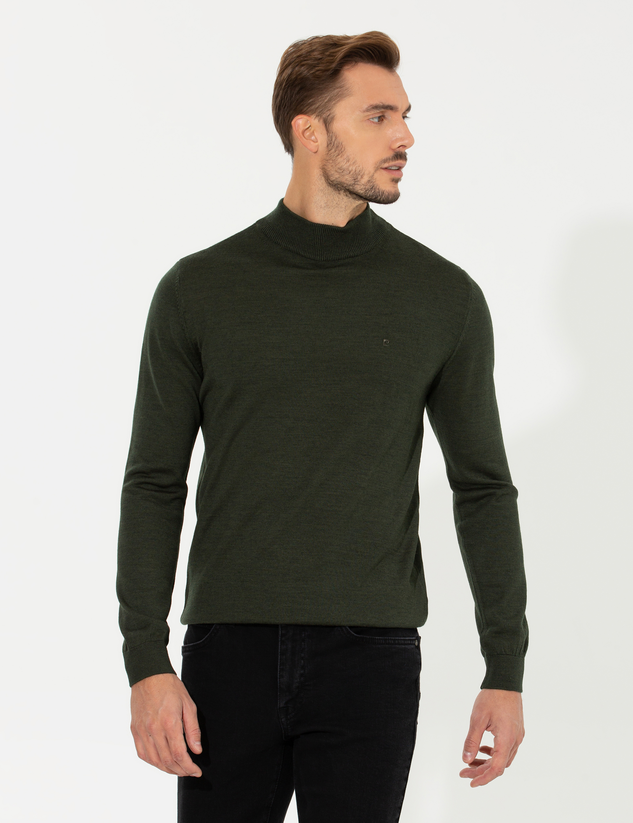 Yeşil Regular Fit Yarım Balıkçı Yaka Yün Karışımlı Basic Triko Kazak