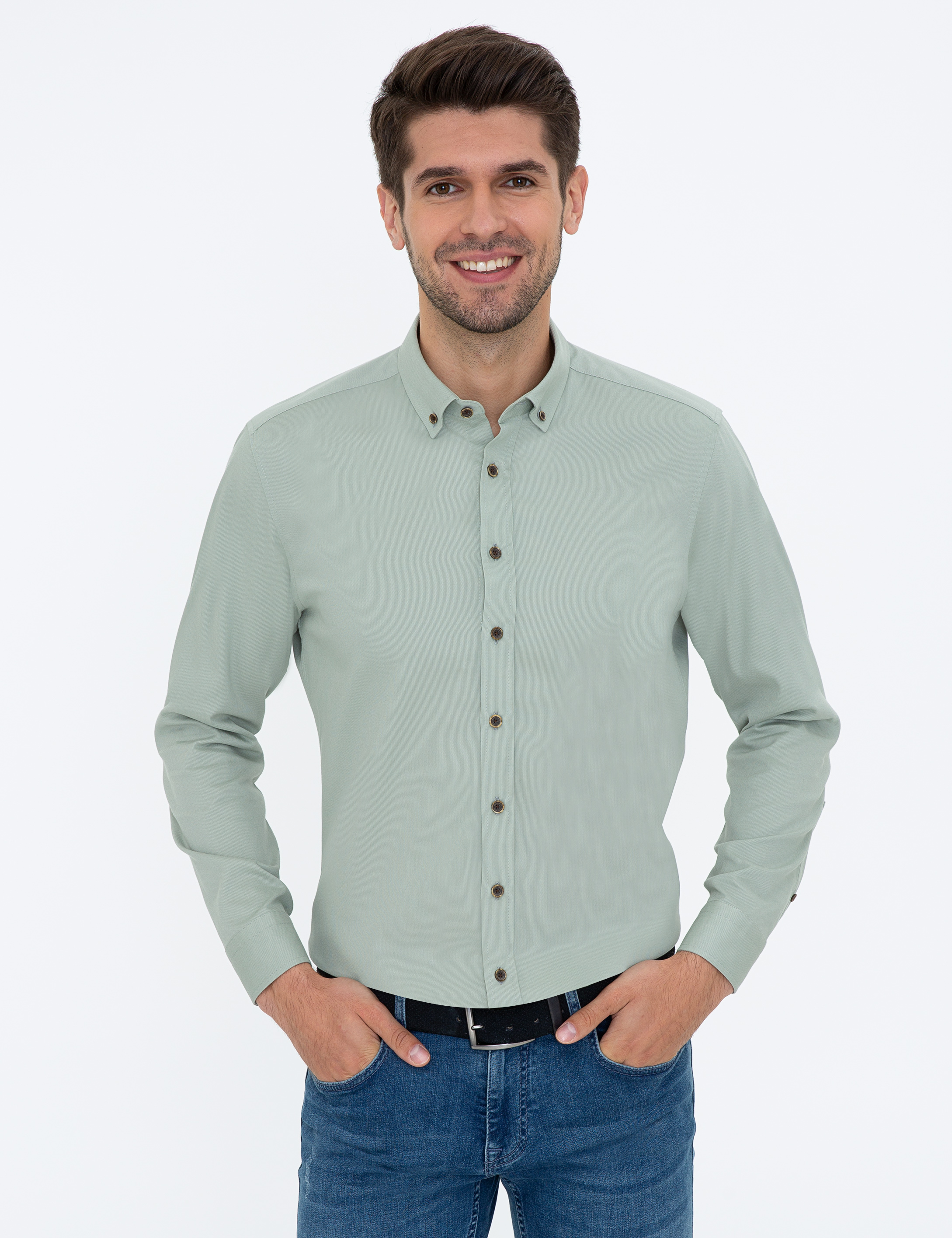- Su Yeşili Regular Fit Uzun Kollu Gömlek