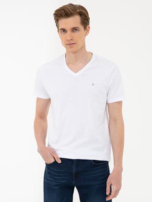 - Beyaz Slim Fit Basic V Yaka Tişört