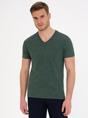 Koyu Yeşil Slim Fit V Yaka Tişört