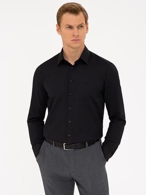 - Siyah Slim Fit Armürlü Gömlek