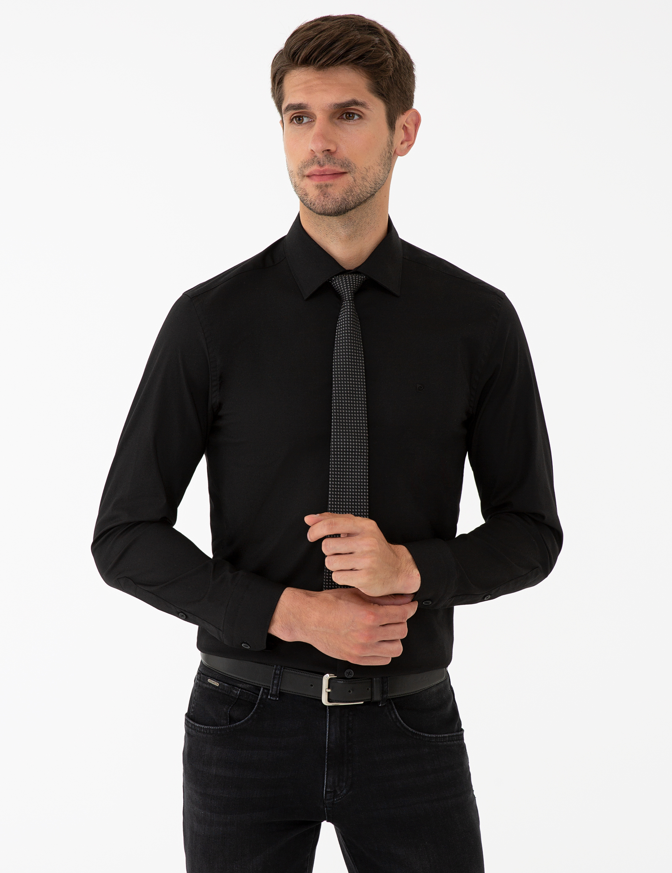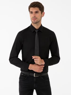 - Siyah Slim Fit Likralı Basic Gömlek